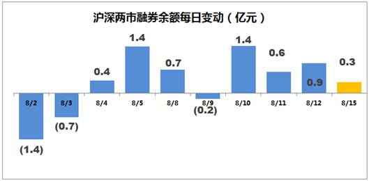 截至周一(8月15日),A股融资融券余额为8803.32亿元,较前一交易日的8691.23亿元增加112.09亿元。