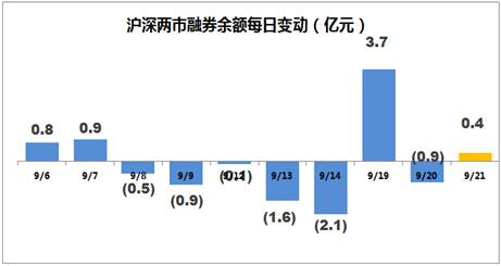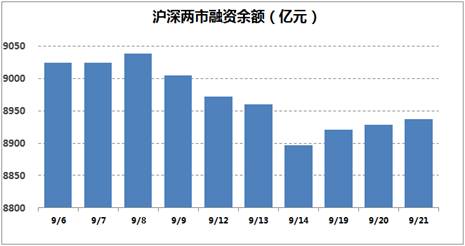 截至周三(9月21日),A股融资融券余额为8974.70亿元,较前一交易日的8966.10亿元增加8.6亿元。