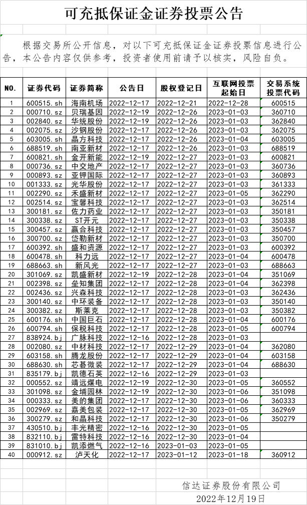 可冲抵保证金证券折算率批量调整公告(2022-12-16)