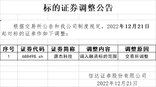 标的证券调整公告(2022-12-21)